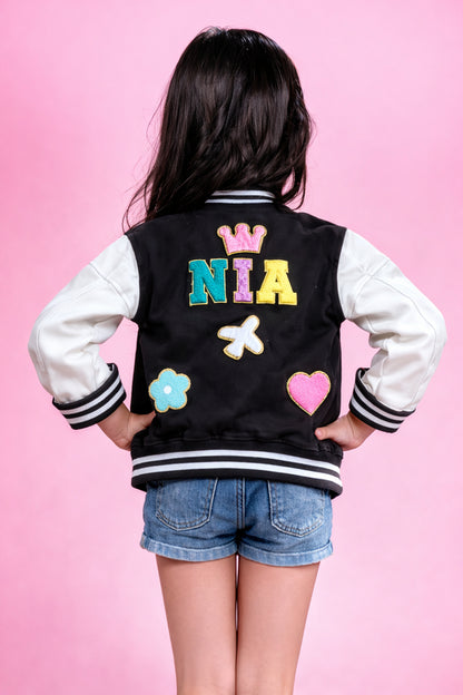 Introducing the ultimate Boys & Girls Varsity Jacket—designed to match your little star’s bold, confident, and playful personality!