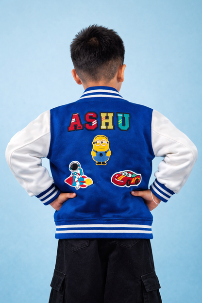 Your little one will shine wherever they go in this bold Blue and Black Varsity Jacket—designed to stand out and collect compliments!